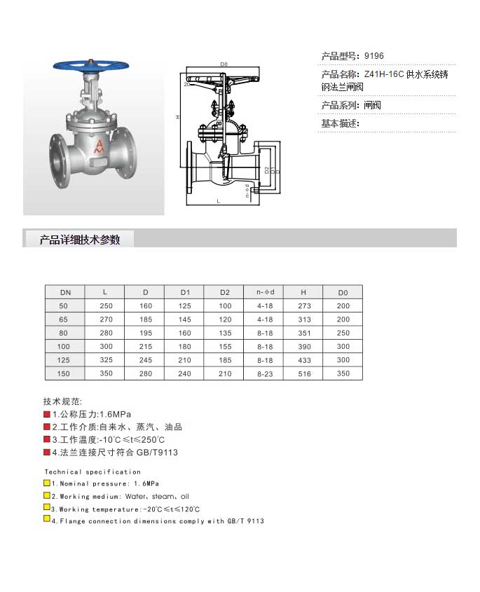 Z41H-16C 供水系統(tǒng)鑄鋼法蘭閘閥