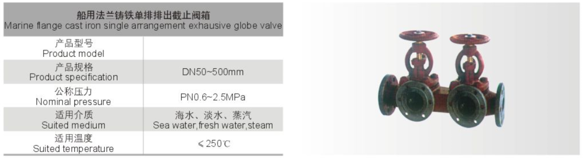 船用法蘭鑄鐵單排排出截止閥箱